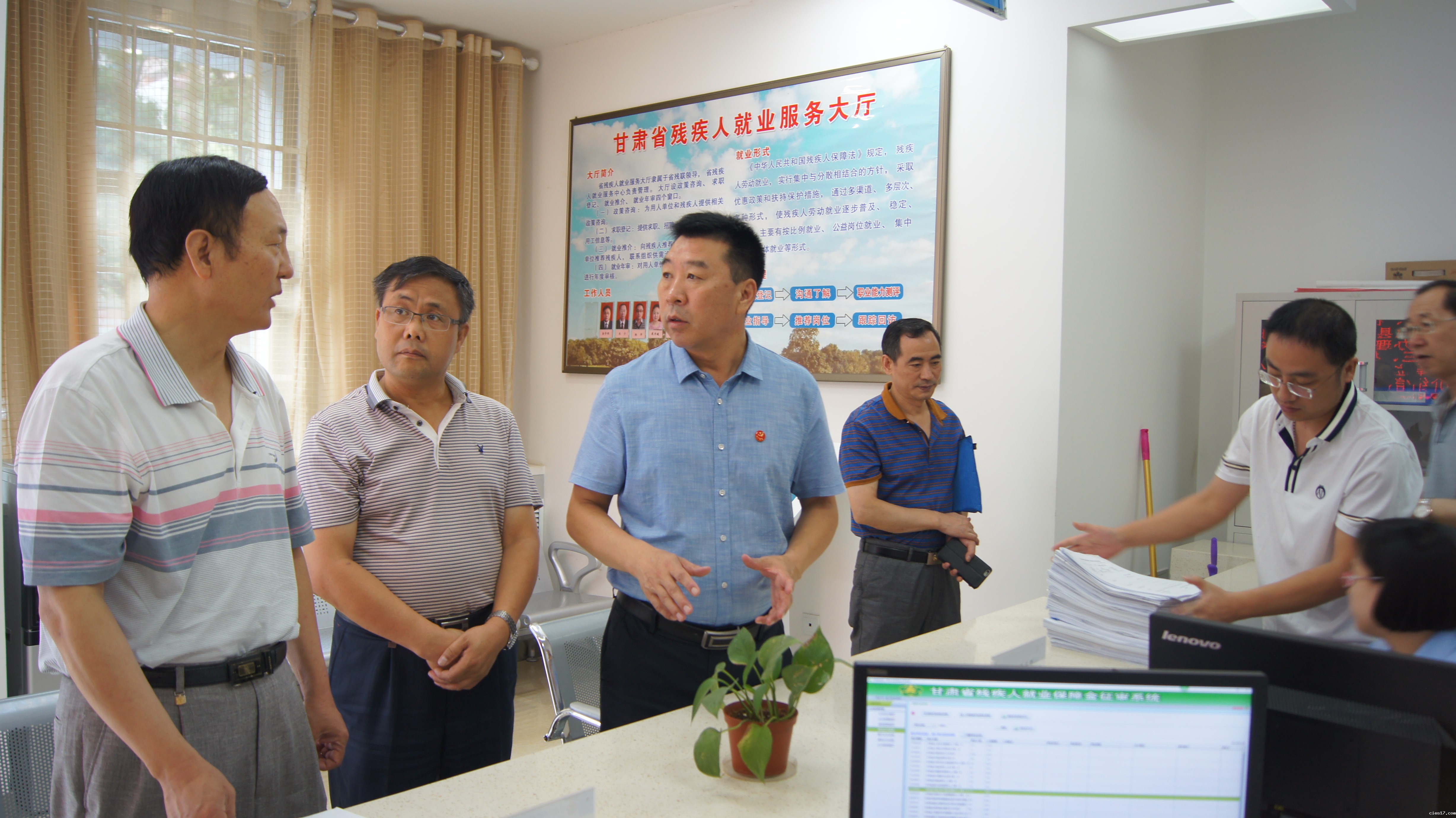 8月16日上午,优米体育直播副理事长杨润泉在省残疾人就业服务中心和兰州市残联负责人的陪同下,先后到省残疾人就业服务大厅和兰州市残疾人就业服务大厅检查残疾人就业服务机构规范化建设工作。